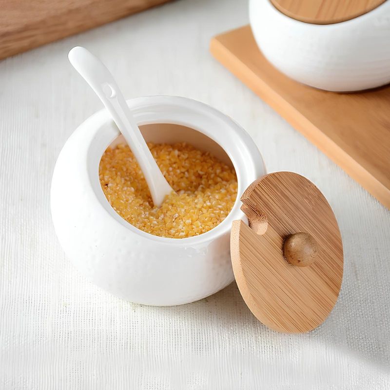Sofisticação e Praticidade Eleve sua experiência culinária com o Açucareiro em Cerâmica e Base de Bambu Este elegante item não é apenas funcional, mas também acrescenta um toque de sofisticação à sua cozinha. Com um design exclusivo.