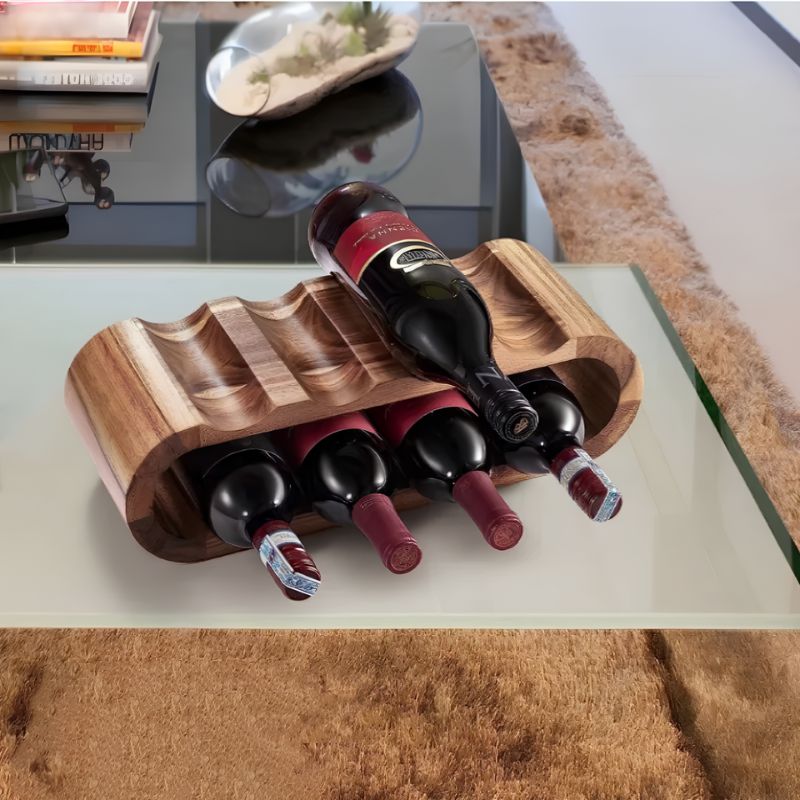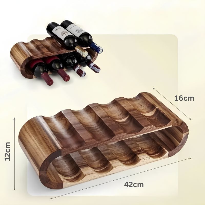 Desfrute da resistência e durabilidade deste porta vinhos confeccionado em madeira premium. Sua construção sólida proporciona uma sensação robusta, enquanto o acabamento refinado realça os padrões naturais da madeira. Cada peça é artesanalmente esculpida, garantindo um toque exclusivo e perfeito.