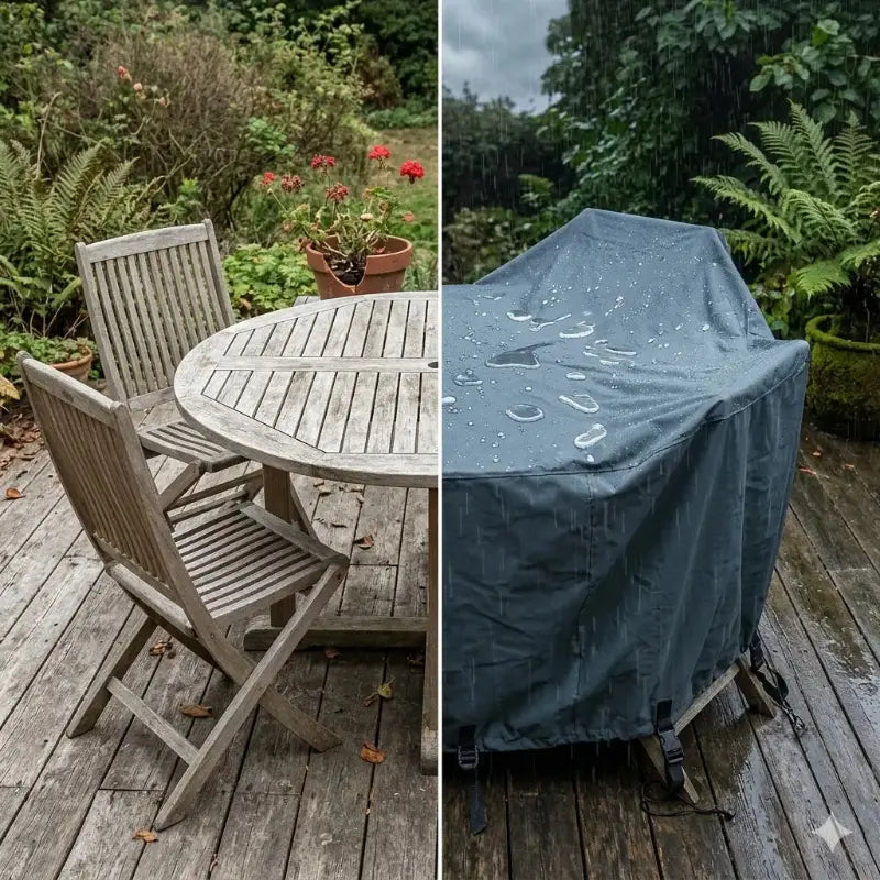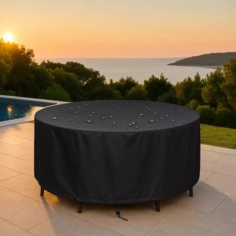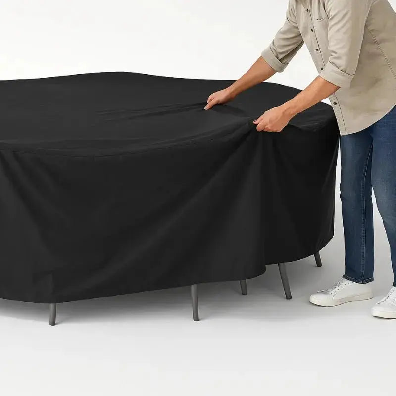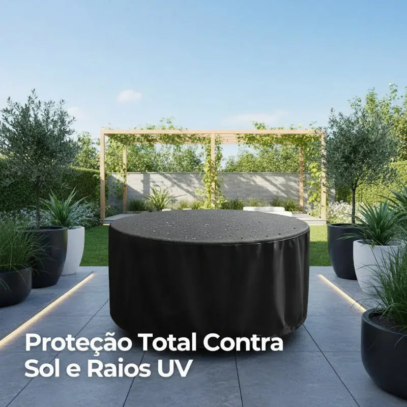 100% Blindagem Anti-Água: O tecido de Poliéster 600D é totalmente impermeável. A água escorre. Seus móveis permanecem secos, livres de mofo e prontos para o uso imediato.