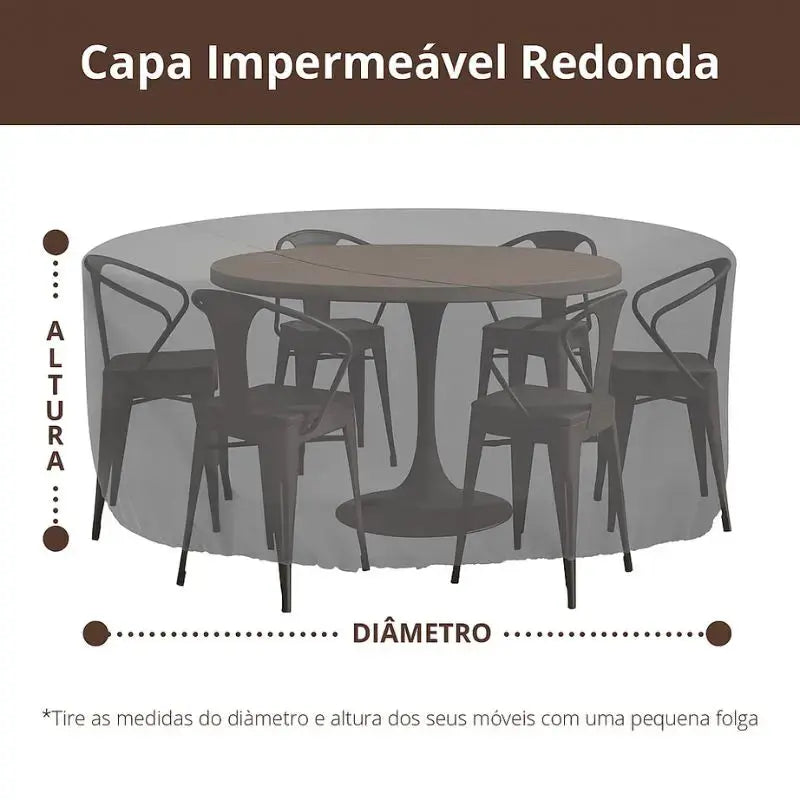 Meça o diâmetro e a altura do seu conjunto (com as cadeiras já debaixo da mesa).