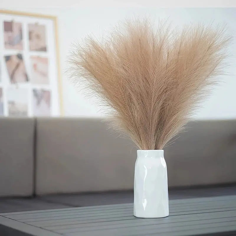 Seja em um vaso alto e elegante ou distribuídas em diferentes cantos do ambiente, estas plumas de pampas artificiais adaptam-se harmoniosamente. Elas são ideais para a sala de estar, hall de entrada ou qualquer espaço que precise de um toque de natureza sem a necessidade de manutenção.
