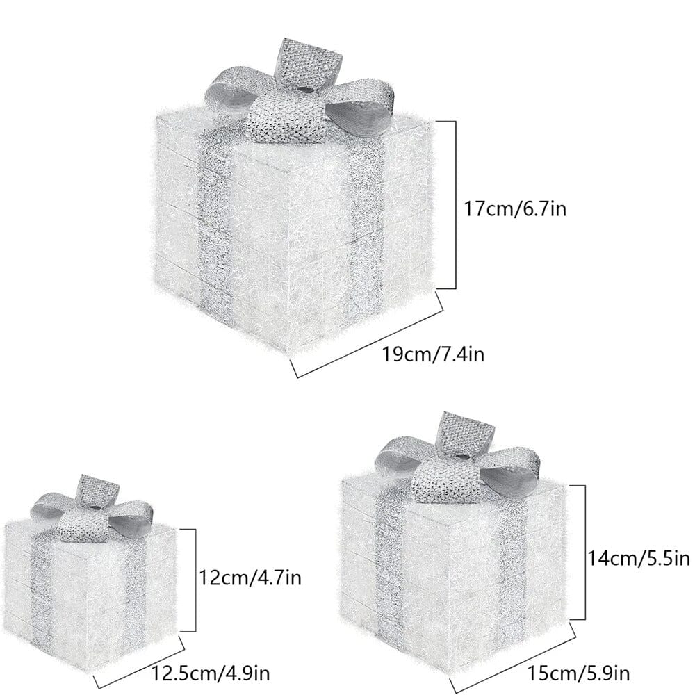Conjunto 3 Caixas de Presente Natalina Iluminada com Laço