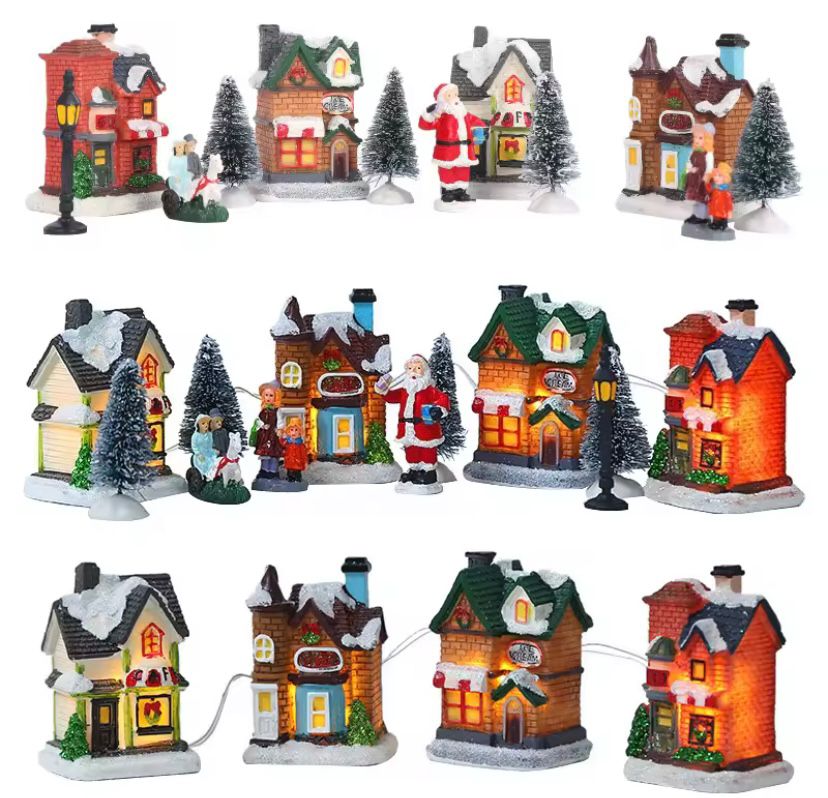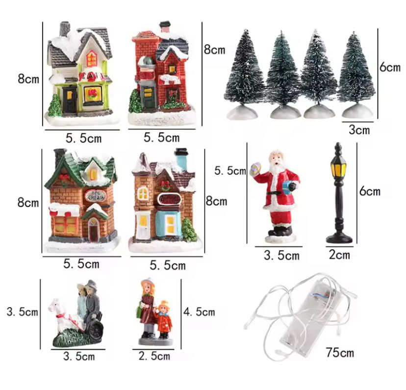 Conjunto de Vila Natalina em Resina Iluminadas por LED