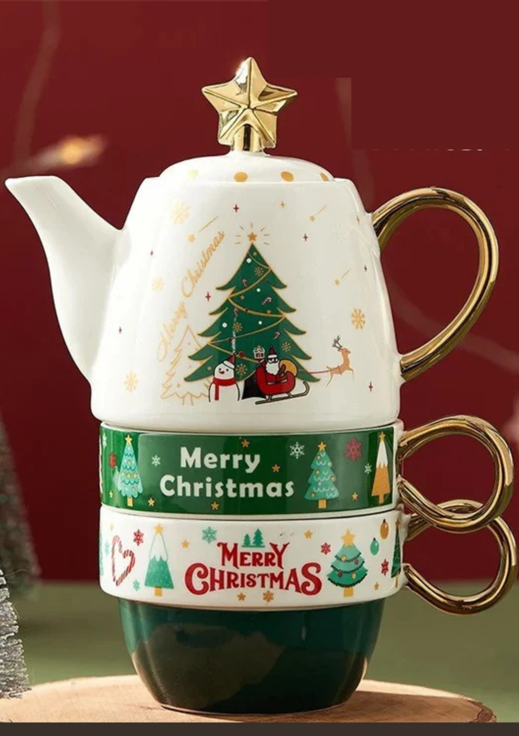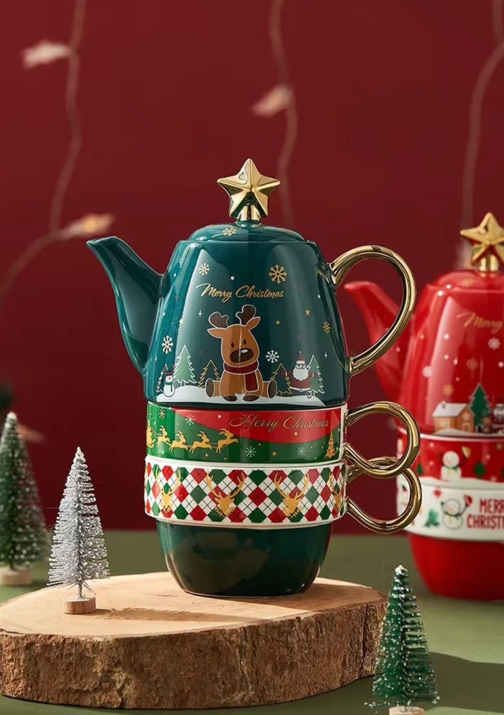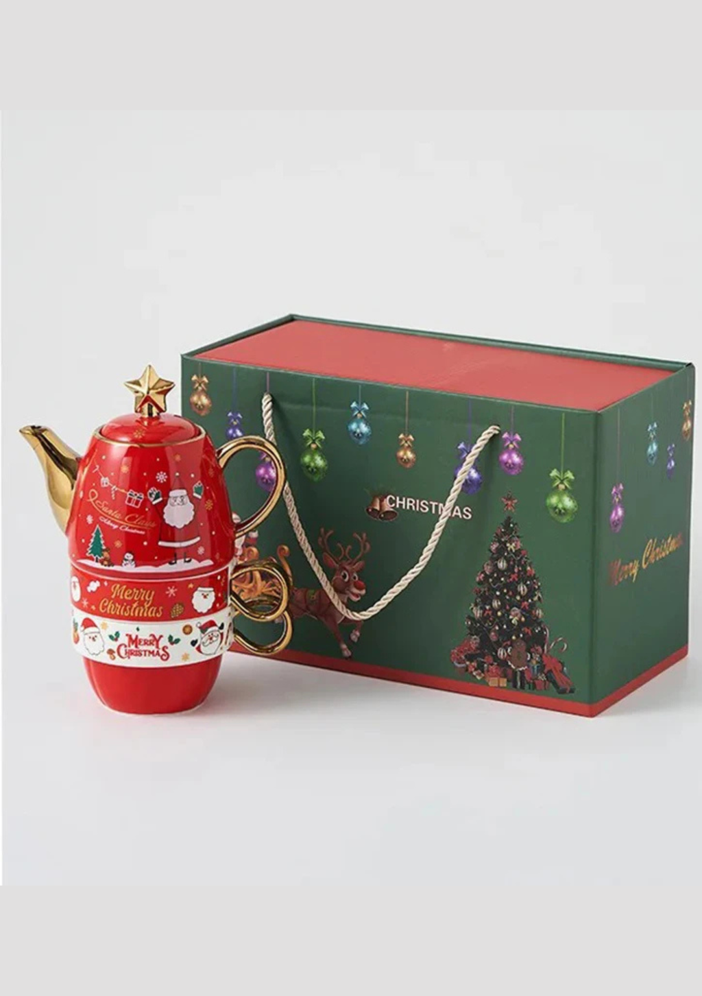 Conjunto Natalino de Bule e Caneca em Cerâmica