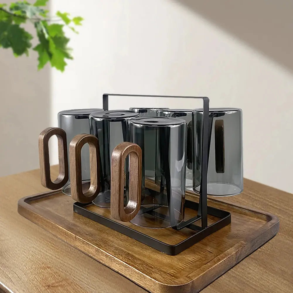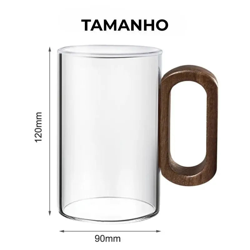 - Copo de Vidro com Alça de Madeira Fuméa (cor conforme selecionado)