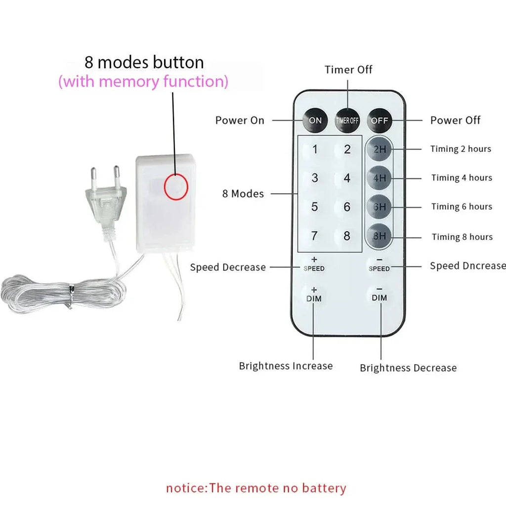 Cortina de Luzes de Fadas LED com Controle Remoto para Natal