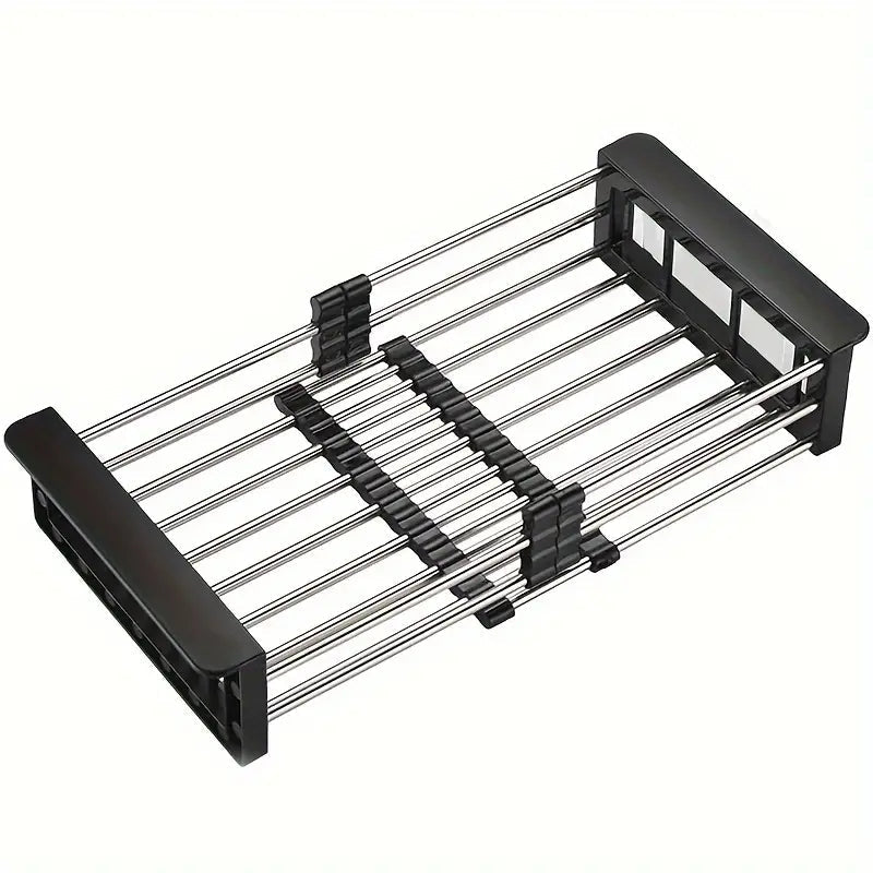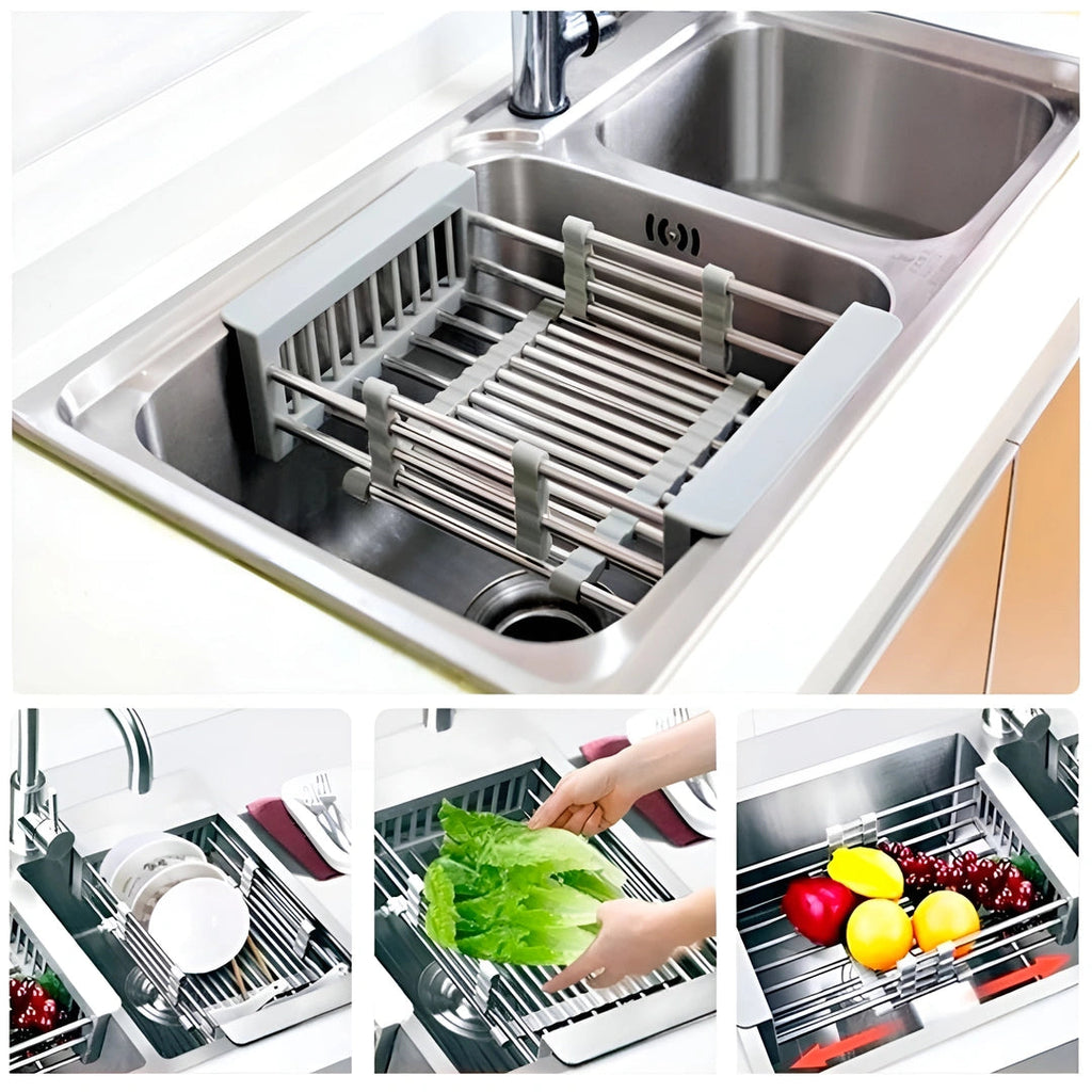 Otimize sua pia com o Escorredor de Pia Lavello da Casa Farfelle. Com estrutura em aço inox resistente e alças retráteis, ele se adapta a diferentes larguras, perfeito para secar pratos, talheres, frutas, legumes e muito mais.