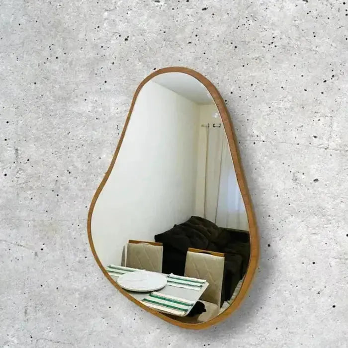 Leve um toque de charme e sofisticação à sua sala de jantar com o Espelho Orgânico com Moldura em Madeira.