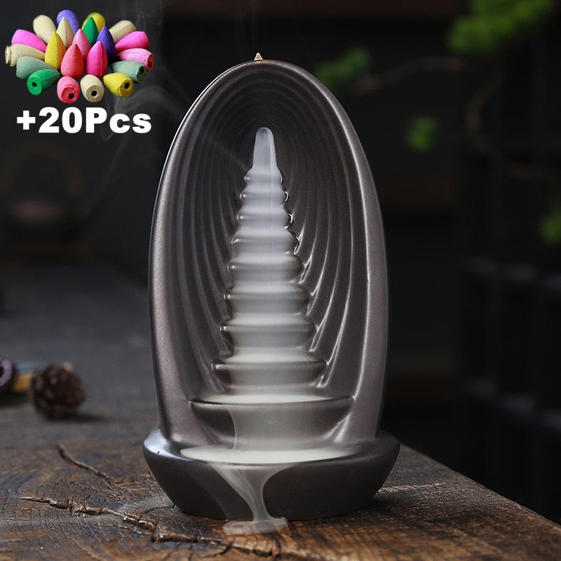 Incensário Cascata Wall River + 20 Incensos Cônicos