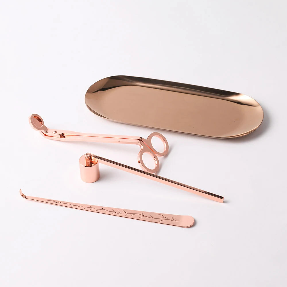 Fabricado em aço inoxidável com acabamento rose gold, une estética e funcionalidade para manter suas velas sempre impecáveis. Disponível em duas versões exclusivas — com isqueiro elétrico recarregável ou com bandeja metálica decorativa — ele é ideal para quem valoriza beleza e praticidade no mesmo produto.