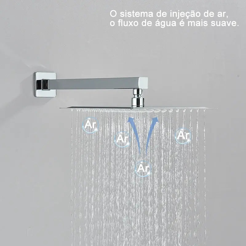 Com seu chuveiro de 20x20cm, você desfruta de um banho com jatos suaves e bem distribuídos, proporcionando uma experiência relaxante e revigorante.