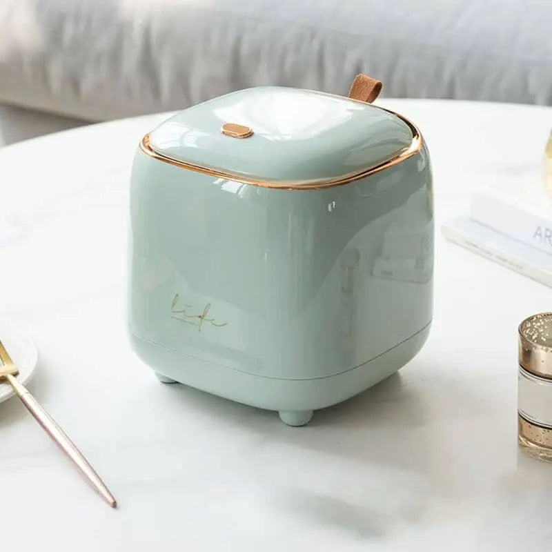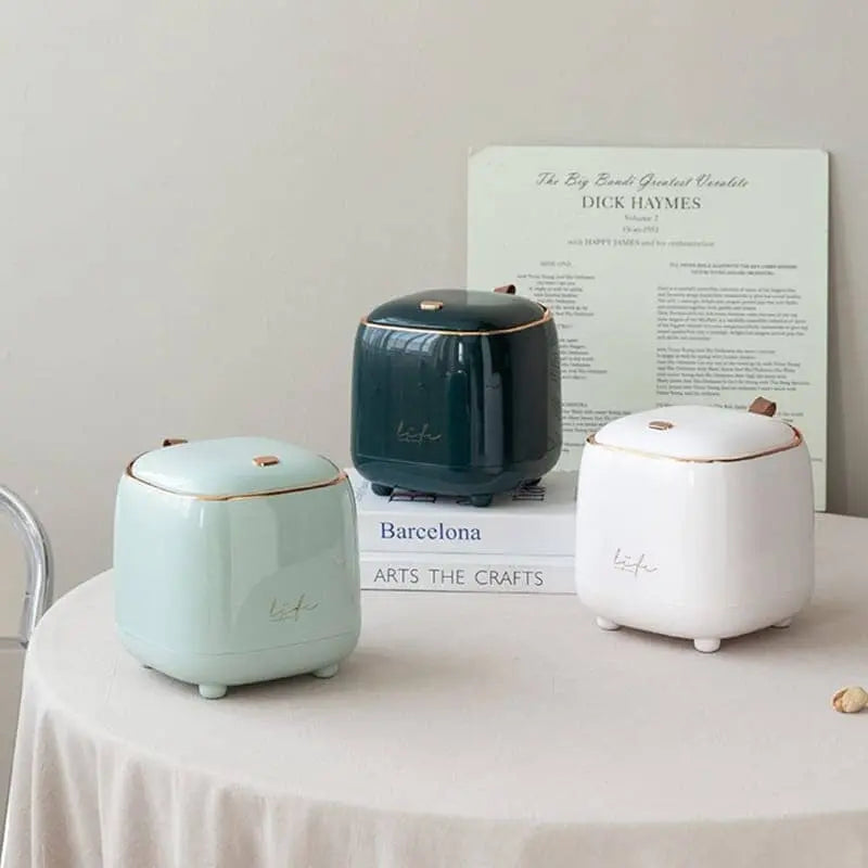 A Lixeira de Mesa Carino da Casa Farfelle traz simplicidade refinada para o cotidiano. Compacta mas espaçosa, oferece praticidade na limpeza do seu espaço com estilo. Disponível em cores neutras — branco, verde escuro e verde claro — sua forma clean e acabamento suave combinam com quaisquer decorações de lavabo, cozinha, escritório ou penteadeira. Ideal para quem busca organização com leveza e sofisticação.