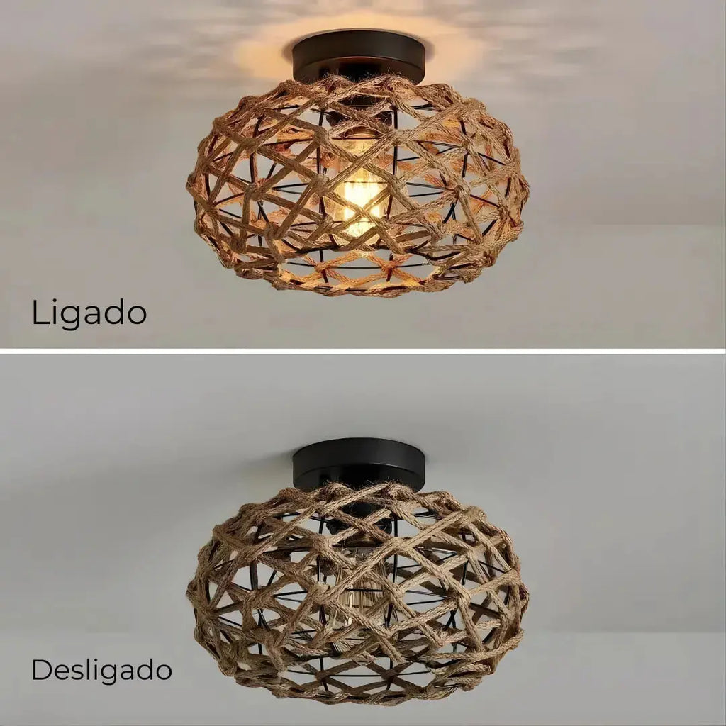 Dê um toque de charme rústico e sofisticação natural aos seus ambientes com a Luminária de Teto Oho-Chic. Combinando corda de cânhamo, vime trançado e apliques artesanais, esta luminária une beleza, funcionalidade e design retrô, ideal para cozinhas, quartos, corredores ou qualquer espaço que mereça destaque.