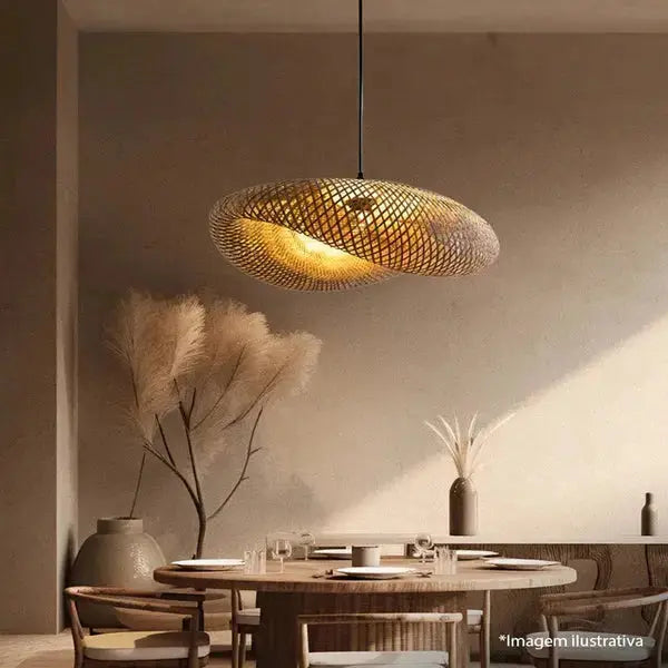 Feita com fibra natural de bambu, sua estrutura vazada e orgânica traz um toque rústico e contemporâneo ao mesmo tempo. Ideal para quem deseja uma decoração autêntica e cheia de personalidade, conectada à natureza.