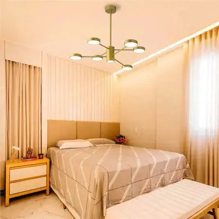 Transforme seu ambiente com o Lustre LED Galáxia Dourado, uma peça inspirada nas galáxias que une design moderno e tecnologia de ponta.