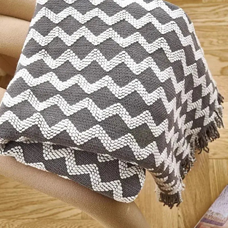 Descubra o aconchego e a sofisticação da nossa manta de malha acrílica. Com um design boho encantador, ela é perfeita para qualquer ambiente, seja em casa ou em viagens.