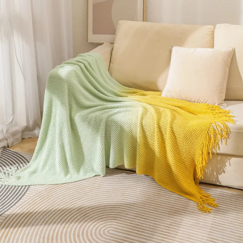 Descubra a manta que combina elegância e aconchego, perfeito para qualquer ambiente da sua casa. Com um design gradiente sofisticado, ela não só aquece, mas também transforma o visual do seu espaço.