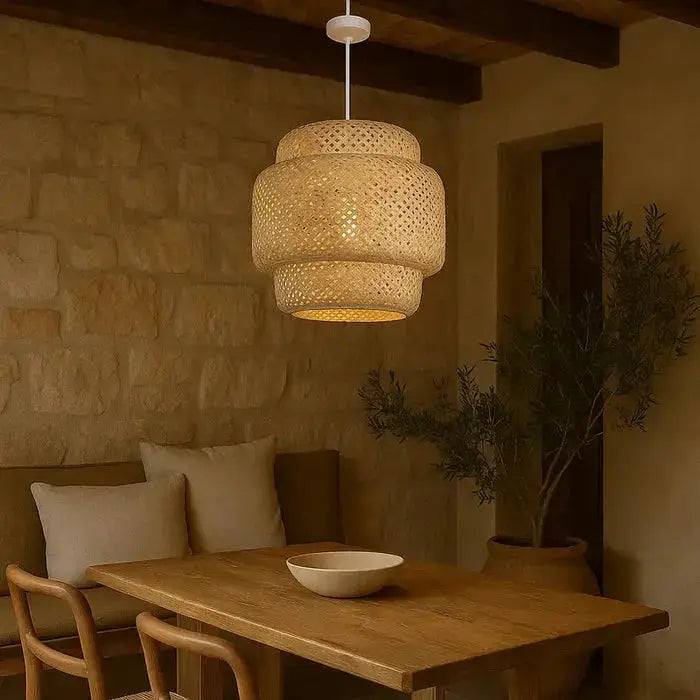 Transforme seu ambiente com o charme acolhedor do Pendente de Bambu Artesanal, uma peça única que une sustentabilidade, beleza natural e iluminação sofisticada. Feito à mão por artesãos especializados, cada pendente possui detalhes exclusivos que valorizam a textura orgânica do bambu e trazem um toque de elegância natural ao seu lar.