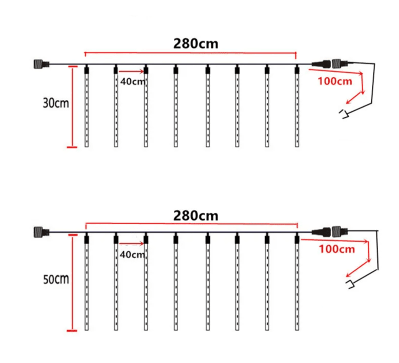 Lâmpadas LED de por tubo: 30cm-18 LED (Total 144 LEDs); 50cm-30 LEDs (Total 240LEDs)