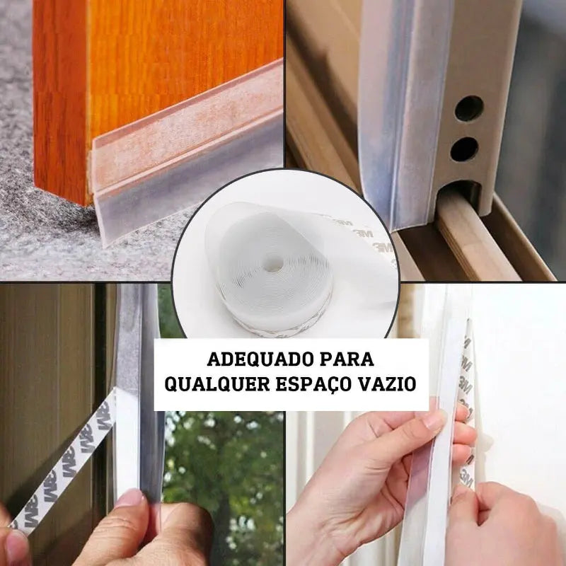 Recomendamos medir o espaço da fresta. Para frestas de até 15mm, use a fita de 25mm. Para frestas entre 15-25mm, a de 35mm. Para frestas maiores (até 30mm), a de 45mm é a mais indicada para garantir a vedação total.
