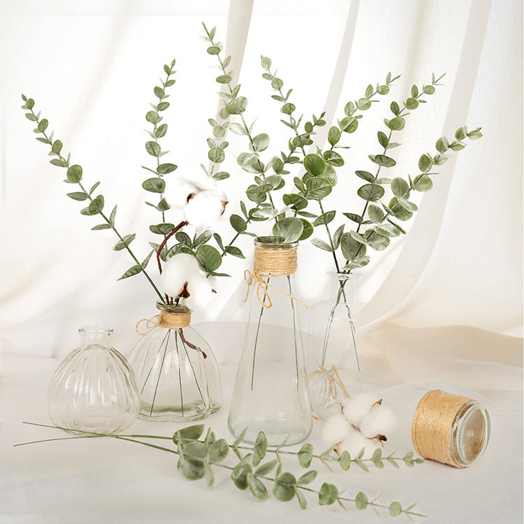Cada ramo é criado com atenção aos detalhes, replicando a textura e a cor das folhas de eucalipto naturais. Eles são perfeitos para arranjos florais, decorações de mesa ou como um complemento verdejante em qualquer vaso, oferecendo durabilidade e um visual fresco o ano todo.