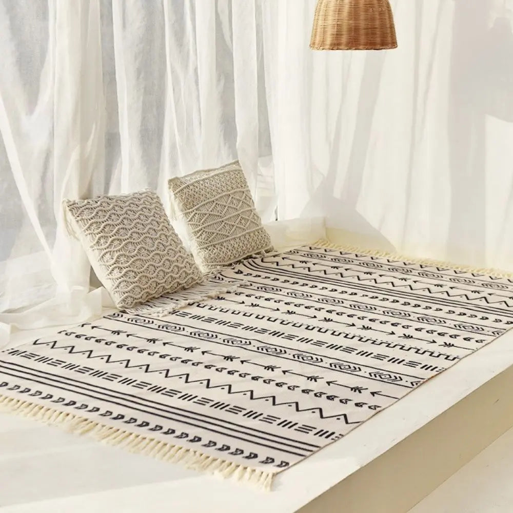 Versatilidade de design: Seu design minimalista e elegante complementa uma variedade de estilos de decoração, desde os mais modernos até os mais tradicionais. É o toque final perfeito para qualquer ambiente. Tapete de Algodão Retangular Sala Quarto Nórdico Grande Inca