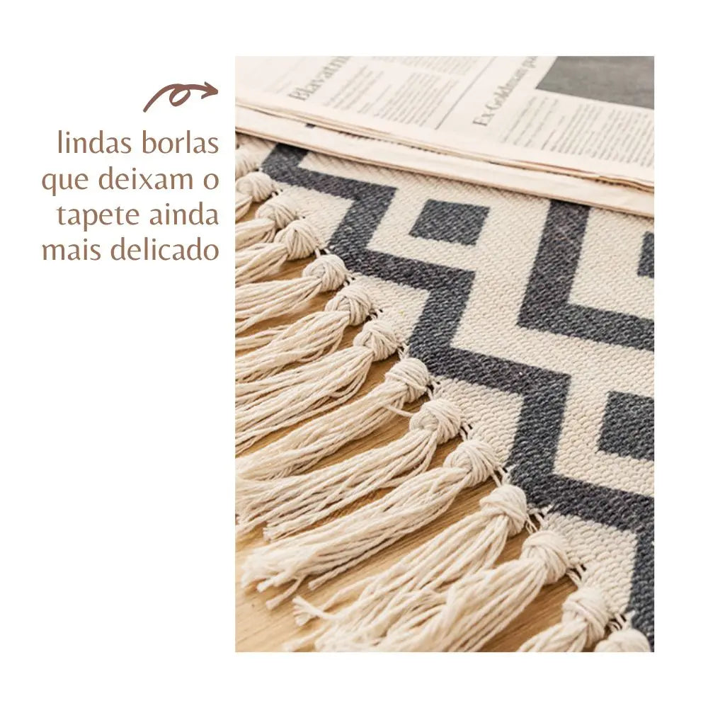 Suavidade ao toque: Feito com algodão de alta qualidade, este tapete proporciona uma sensação aconchegante e confortável sob os pés, ideal para momentos de relaxamento. Tapete de Algodão Retangular Sala Quarto Nórdico Grande Inca