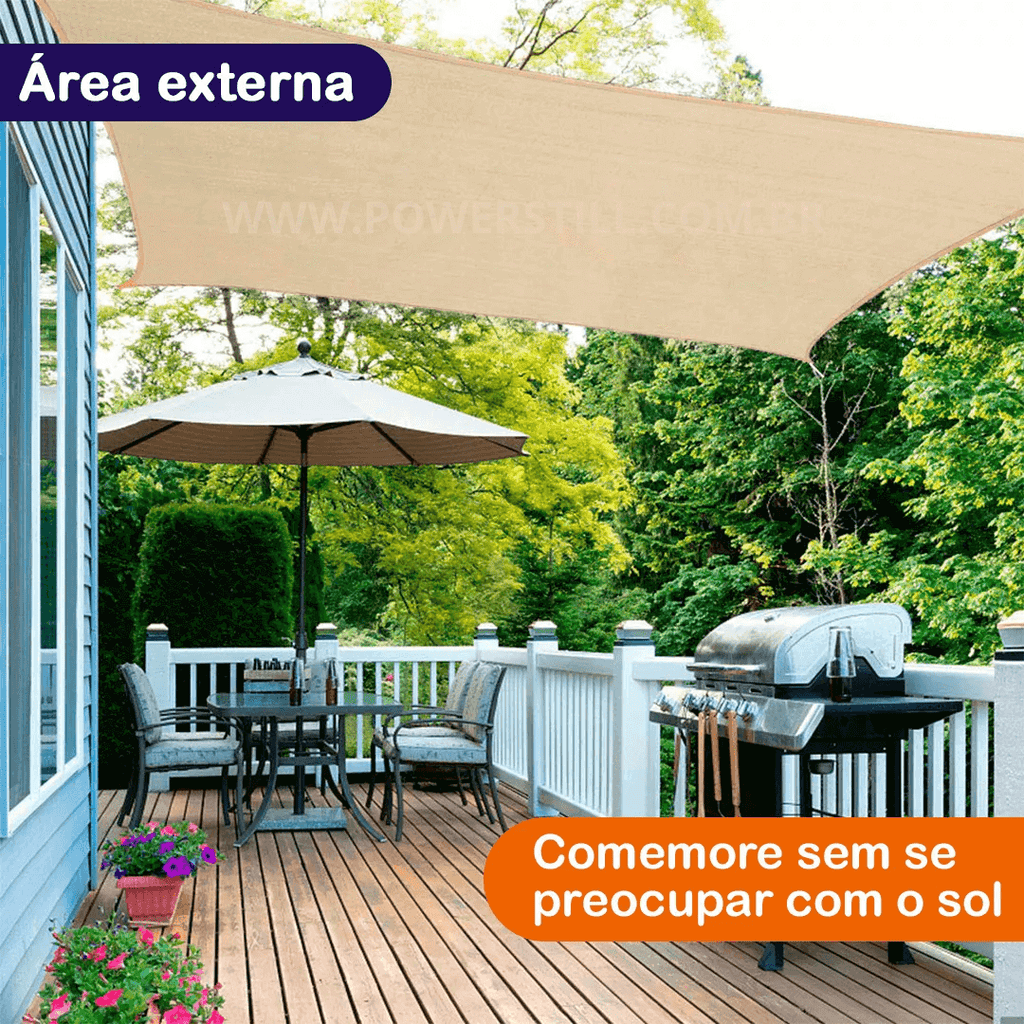 Não é só sombra é proteção de verdade. O toldo bloqueia até 98% dos raios UV, protegendo sua pele, sua família e até seus móveis.