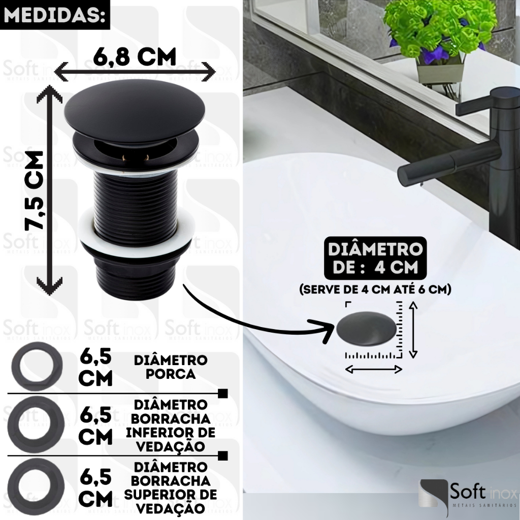 Ideal para cubas e pias com furação entre 4 e 6 cm, essa válvula se encaixa perfeitamente em lavatórios de vidro ou porcelana, garantindo vedação eficiente e uso seguro.