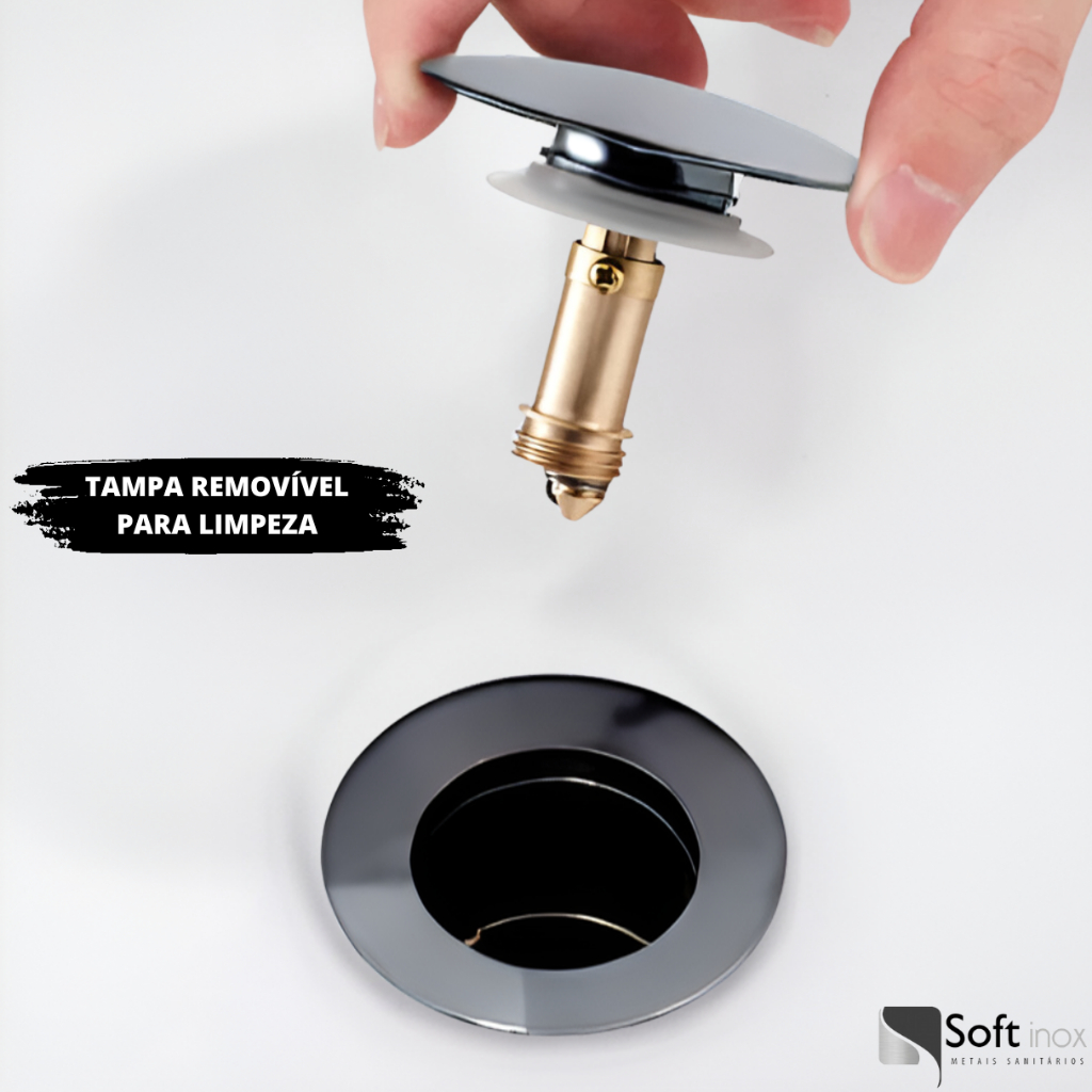 Com um simples toque, você abre ou fecha o escoamento da água com total facilidade. Um sistema intuitivo que oferece controle e comodidade no dia a dia.
