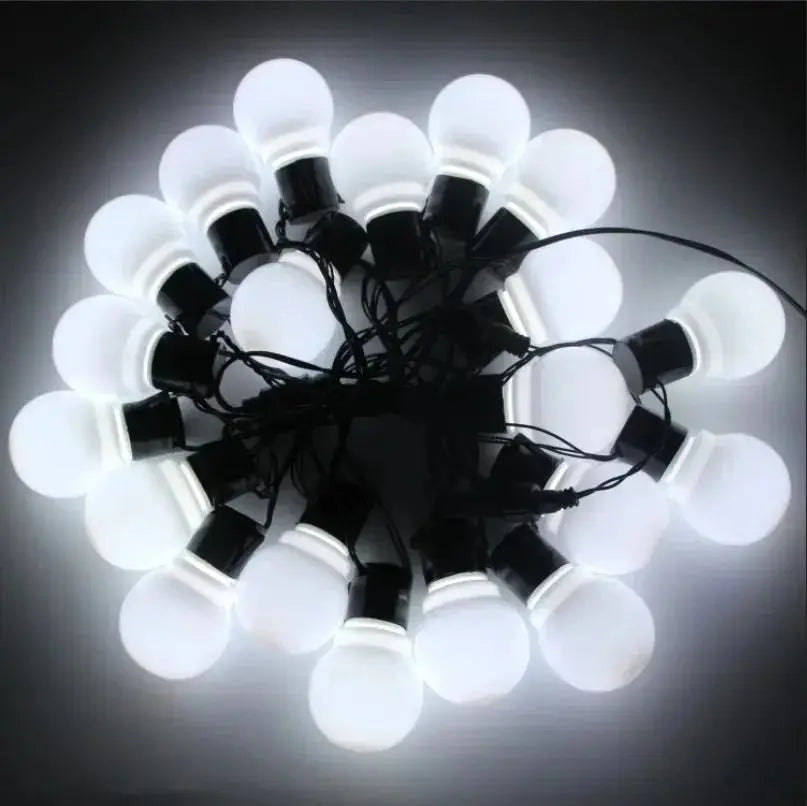 ● Acompanha as Lâmpadas ● Tensão: 110/220v ● Material: Plástico ABS e Policarbonato ● Potência: 2w por Lâmpada ● Conteúdo: x1 varal de 6m/20 Lâmpadas (podem ser conectados entre si)