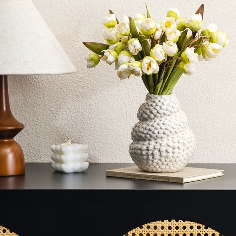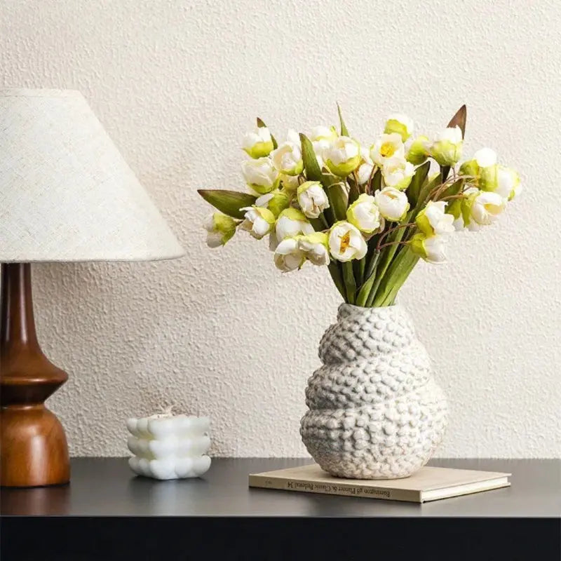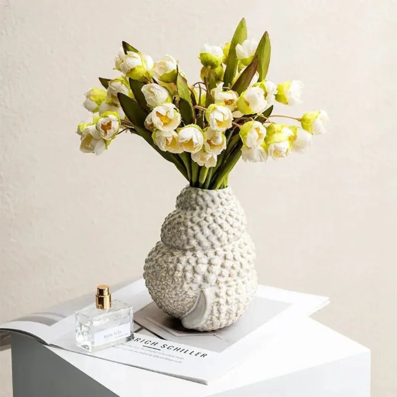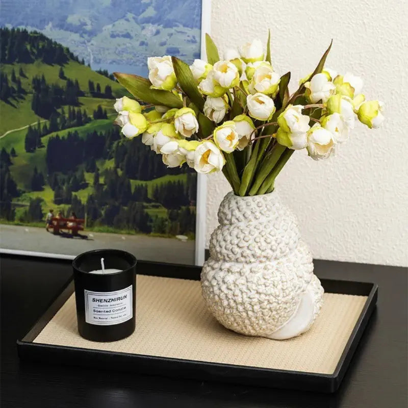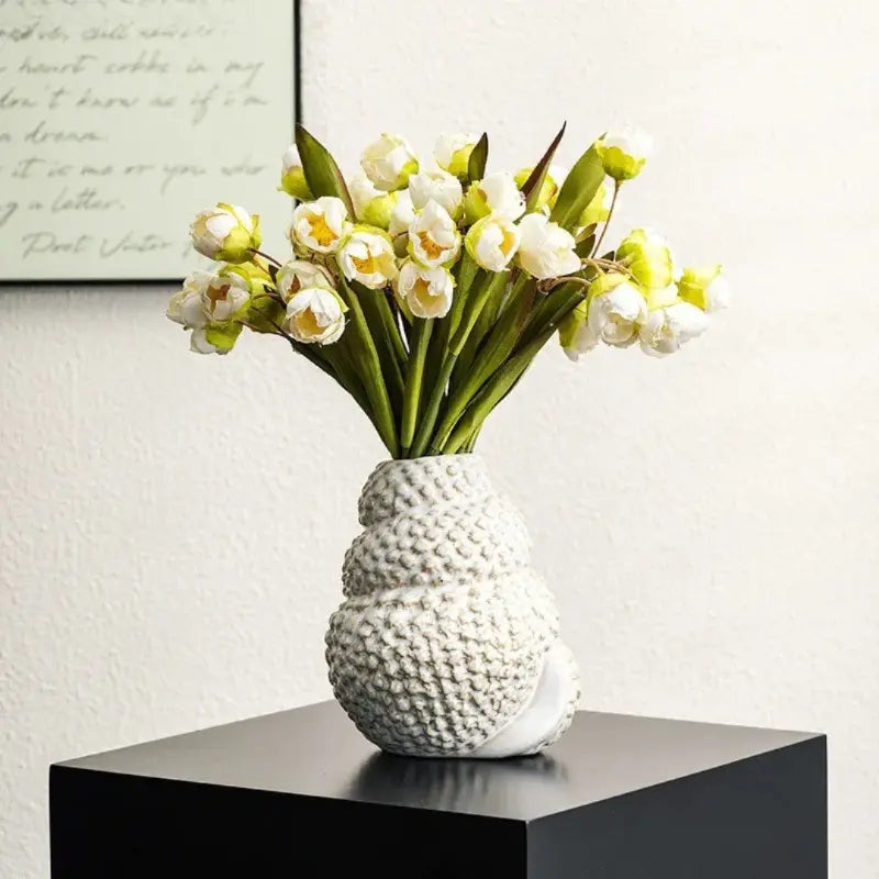 Este vaso de cerâmica em formato de concha é a peça ideal para quem busca uma decoração moderna e elegante. Com sua textura em alto relevo e design criativo inspirado no estilo nórdico, ele é perfeito para realçar arranjos florais ou ser usado como um objeto decorativo em qualquer ambiente. Seu acabamento branco sofisticado traz um toque clean à sala de estar ou ao escritório, proporcionando um ar de tranquilidade e beleza minimalista.