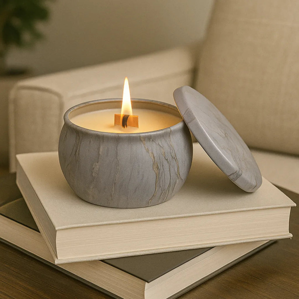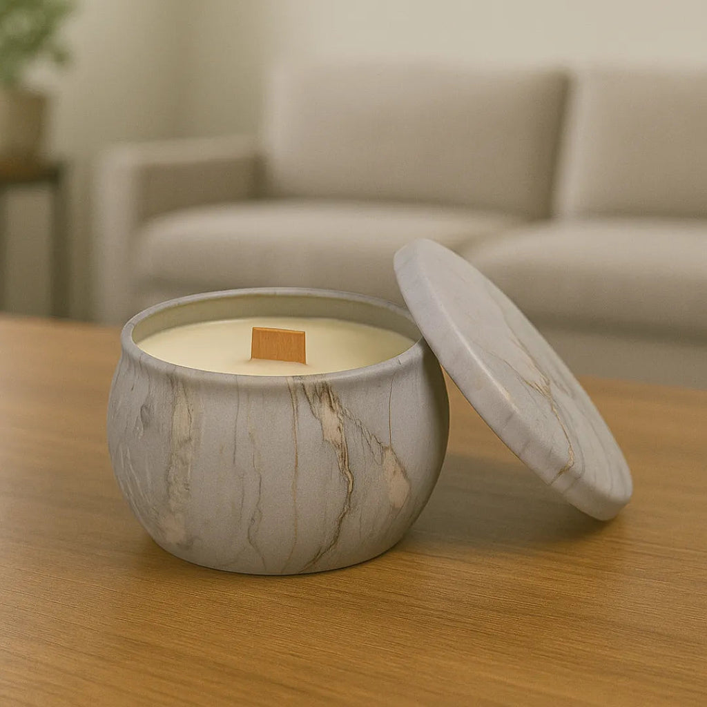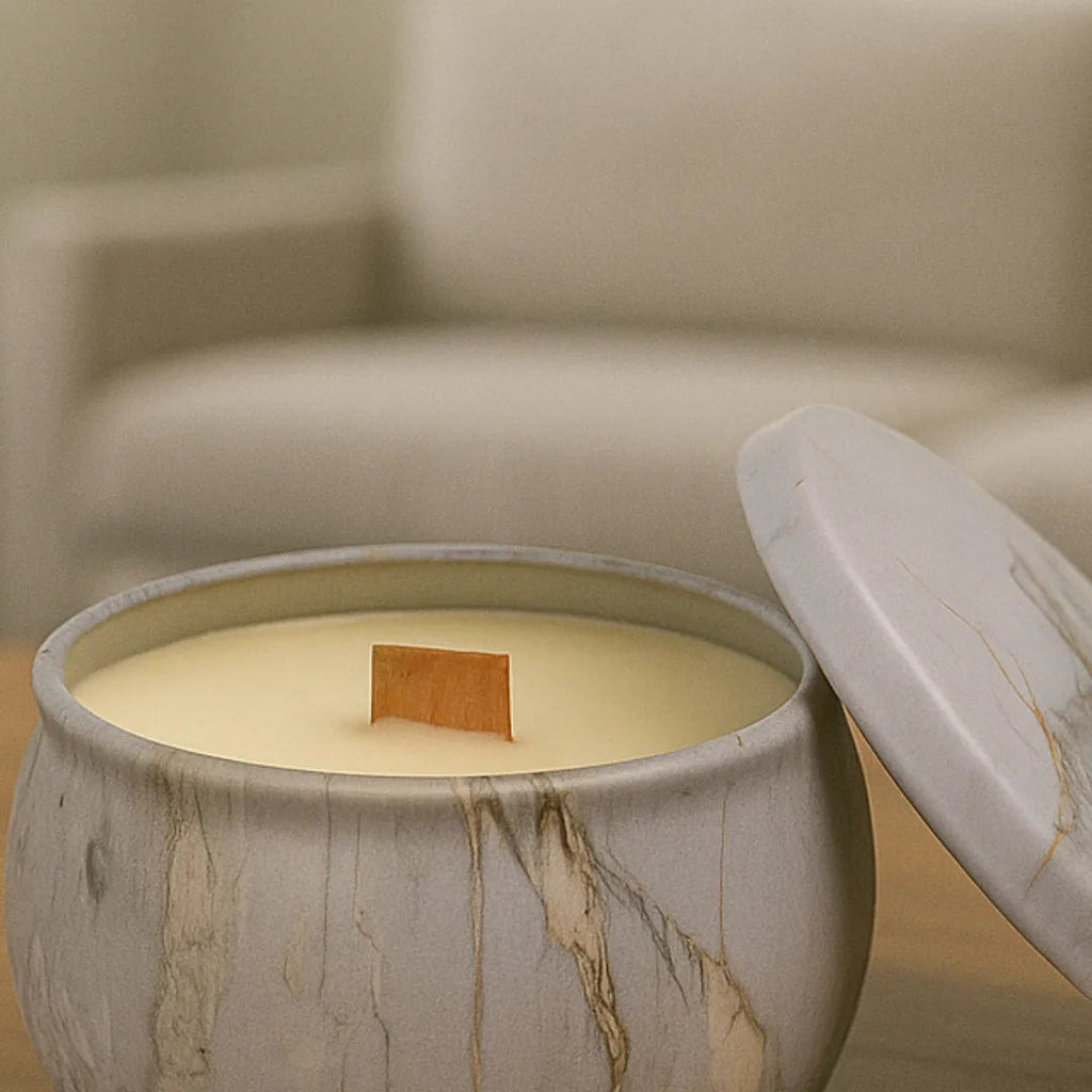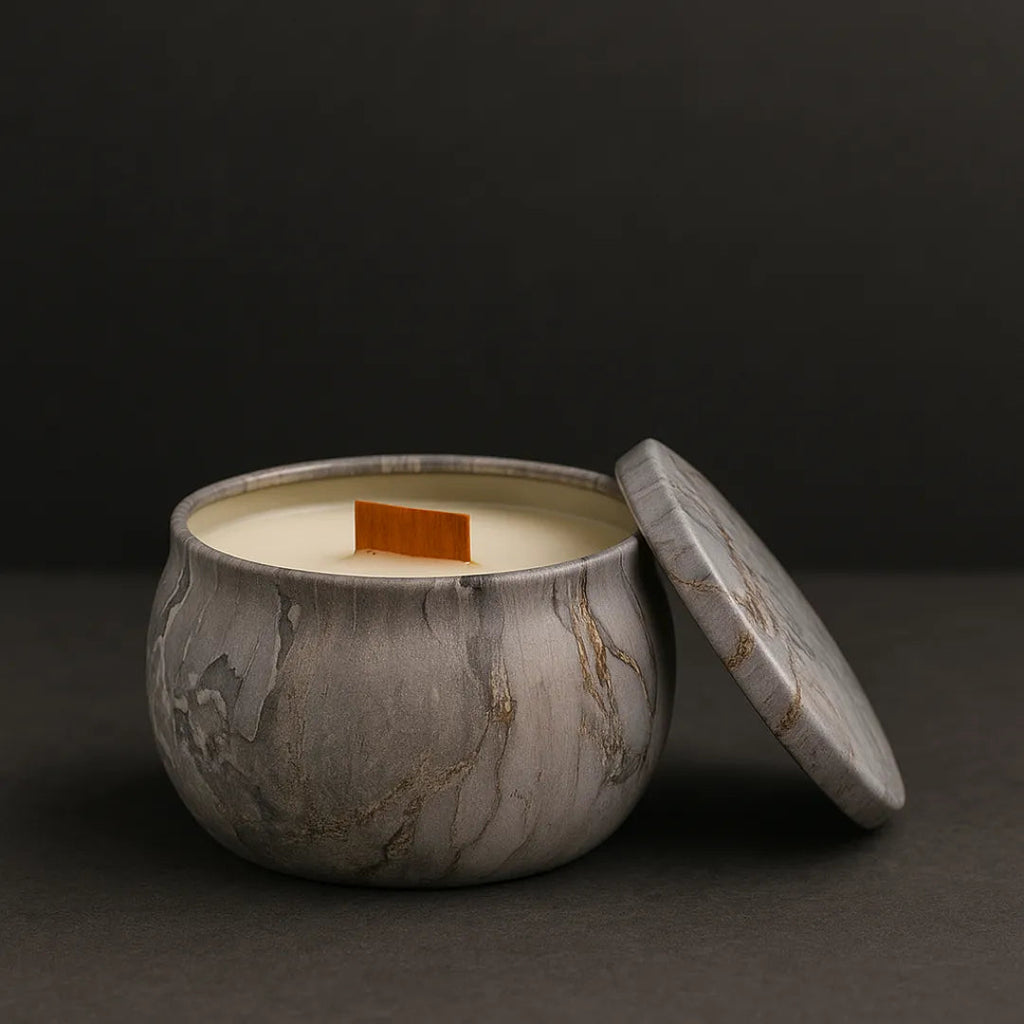 Produzida com cera de coco vegetal e pavio de madeira, proporciona queima limpa e uniforme, liberando uma fragrância marcante e aconchegante que desperta sensações de afeto e nostalgia. Seu recipiente metálico estampado com acabamento elegante também adiciona um toque decorativo que harmoniza com qualquer espaço.