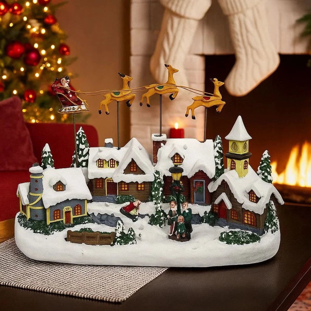 A Vila de Natal Nevada com LED Musical em Resina é a peça perfeita para transformar sua decoração natalina em um espetáculo de luz, som e encanto.